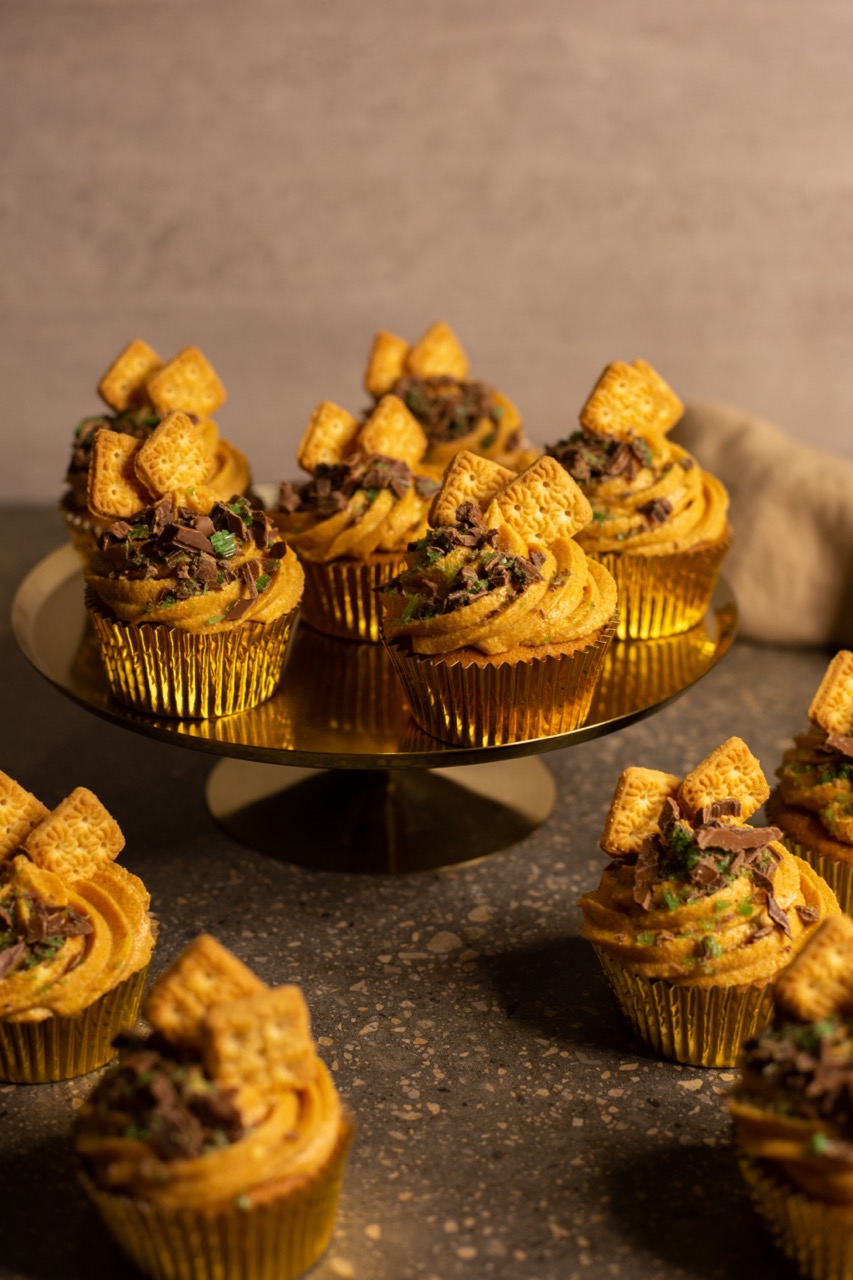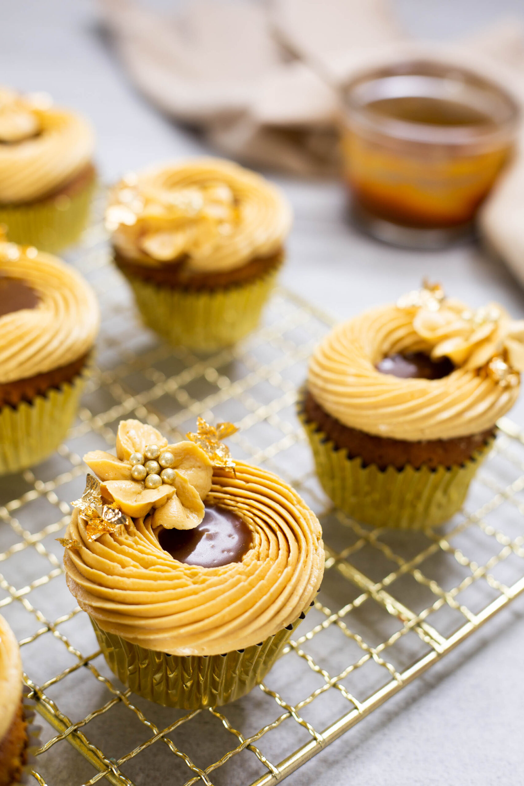 Cupcakes can be enjoyed by adults too and I love sharing them with friends to take home after Christmas Lunch, so that the festivities linger even after they leave. These cupcakes have a warm gingerbread spice and a soft crumb. An oozy caramel centre surprises you when you bite into the cupcake, adding an extra level of decadence!