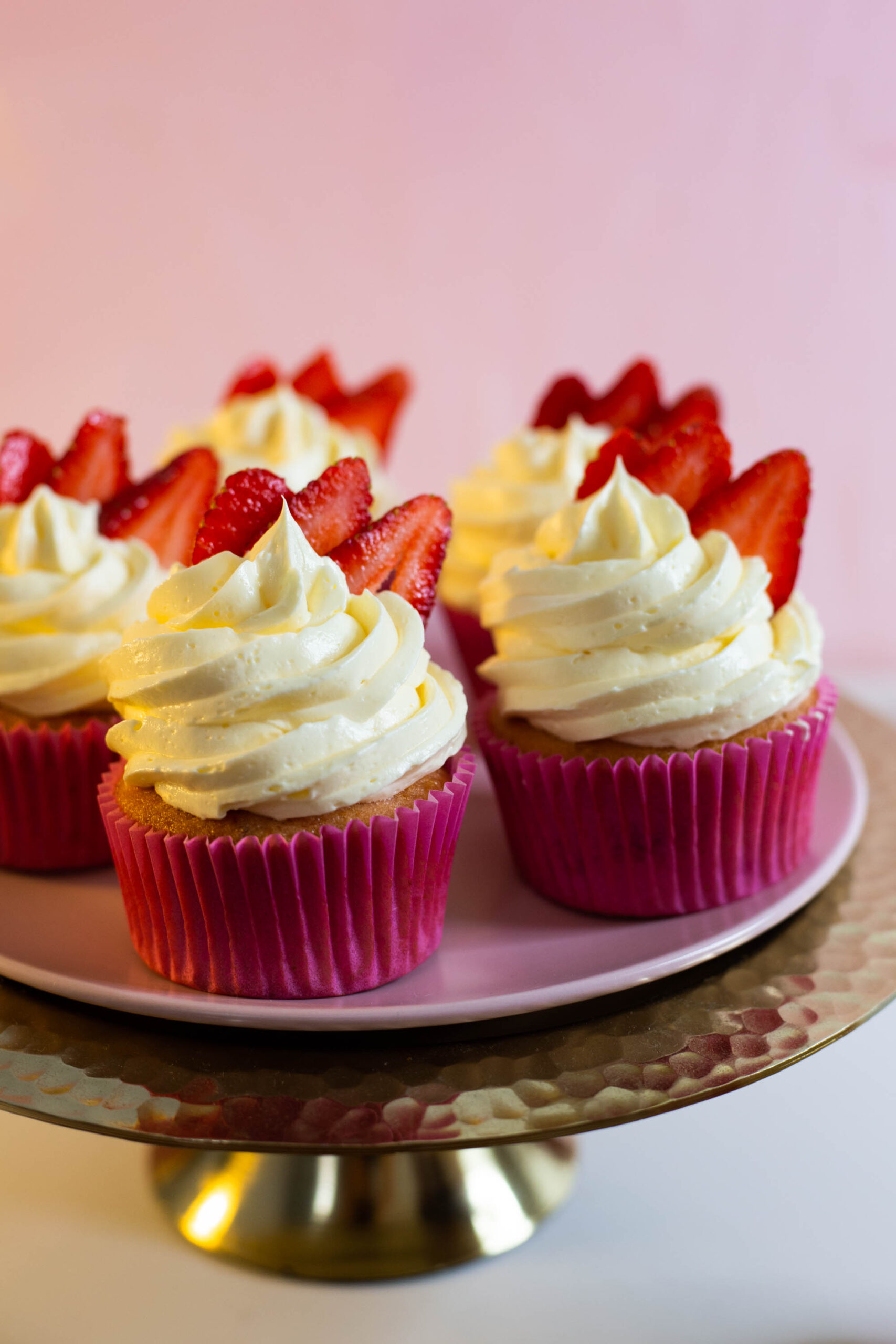 These cupcakes have a fruity flavour as a result of the strawberry jam and fresh chopped strawberries in them. Finding the correct balance of fruit to add is important, as too much fruit and the cupcake can become too heavy.